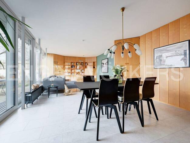 Natur verbindet Design - dieses Zuhause ist mehr als nur ein Ort zum Leben. Es ist ein Rückzugsort, in dem sich hochwertige Materialien, durchdachte Raumplanung und die Kraft der Natur in perfekter B...
