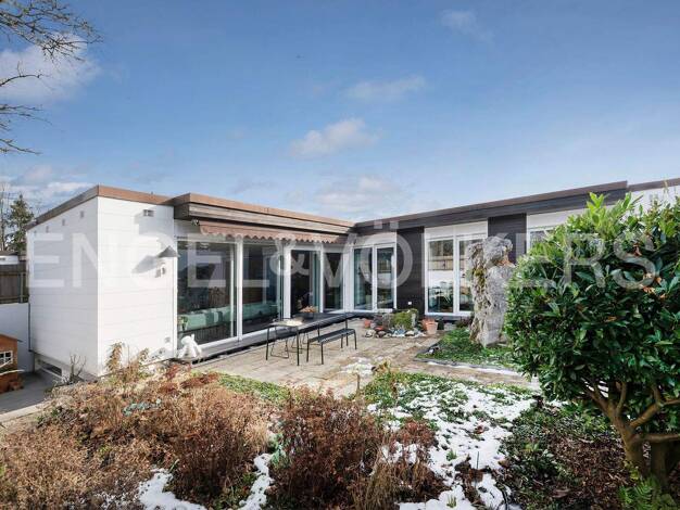 Das architektonisch prämierte Atrium-Haus befindet sich in ruhiger, grüner Villenlage. Die gepflegte Bebauung wird durch große, prachtvoll eingewachsene Gärten ergänzt. Planegg zeichnet sich durch di...