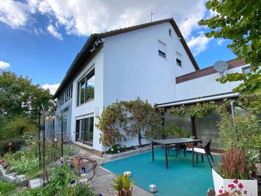 Dieses 1-2-Familienhaus befindet sich in ruhiger und sonniger Hanglage mit Blick in einen angrenzenden Wiesengrund. Die Immobilie eignet sich ideal als großzügiges Einfamilienhaus mit Einliegerwohnun...