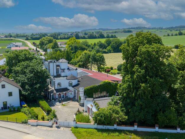 Zum Verkauf steht ein außergewöhnliches Anwesen auf zwei separaten Flurnummern mit insgesamt ca. 3.300 m² Grundstücksfläche. Das Ensemble besteht aus einer großzügigen Villa mit angeschlossenen Halle...