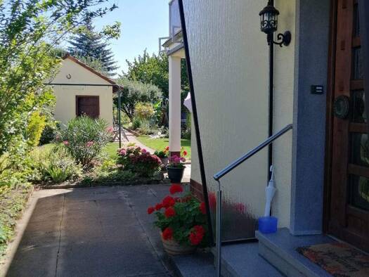 Dieses exklusive freistehende Einfamilienhaus mit ca. 120 m² Wohnfläche steht auf einem sonnigen Grundstück mit Südausrichtung in attraktiver Nähe zu den Weinbergen. Zur Immobilie gehören 2 Stellplät...