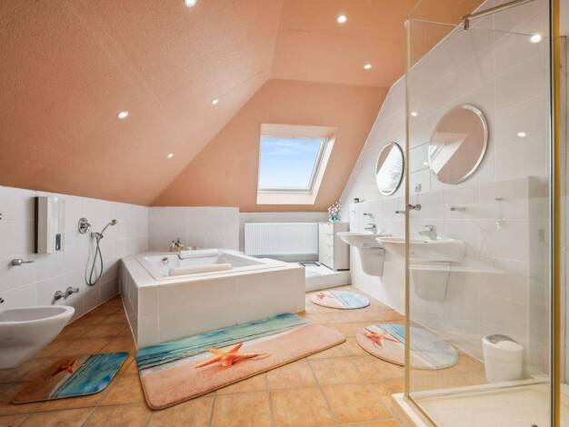 Objektbeschreibung Dieses exklusive Objekt, das im Jahr 2002 erbaut wurde, bietet nicht weniger als 245 m² Wohnfläche und ein beeindruckenden umbauter Raum von 1283 m³ (ohne Garagen). Die Villa verfü...