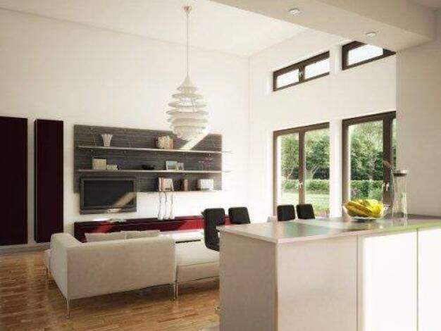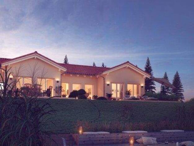Praktische Diele mit Garderobe, offener, lichtdurchfluteter Wohnbereich, ein zusätzliches Arbeits- und ein separates Gästeoder Kinderzimmer mit Dusch-WC: Wer sagt denn, dass ein Bungalow nicht ein ab...