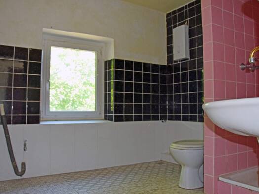 Die Wohnfläche ist unbekannt. Nach eigenem Aufmaß wird diese mit ca. 120 m² benannt. Das einseitig angebaute, 2-geschossige Wohnhaus wurde in Massivbauweise so gut wie ohne Unterkellerung (lediglich ...