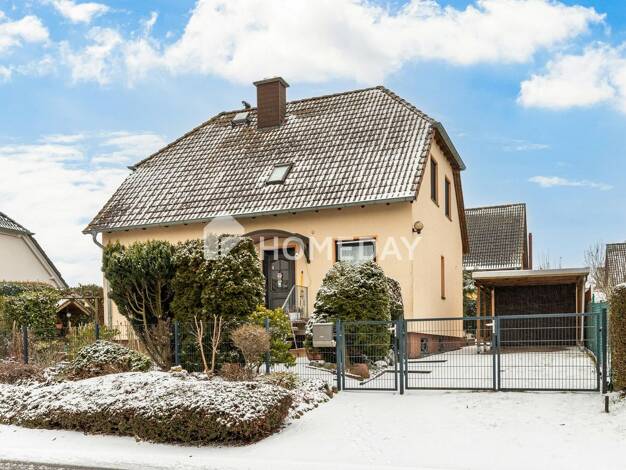 Zweigeschossiges, gepflegtes, teilweise unterkellertes Einfamilienhaus mit schönem Innenhof, Waschküche und Garage. Das Haus hat eine angenehme Größe und ist für eine Familie mit zwei Kindern geeigne...