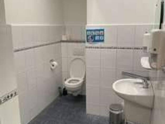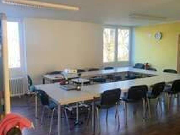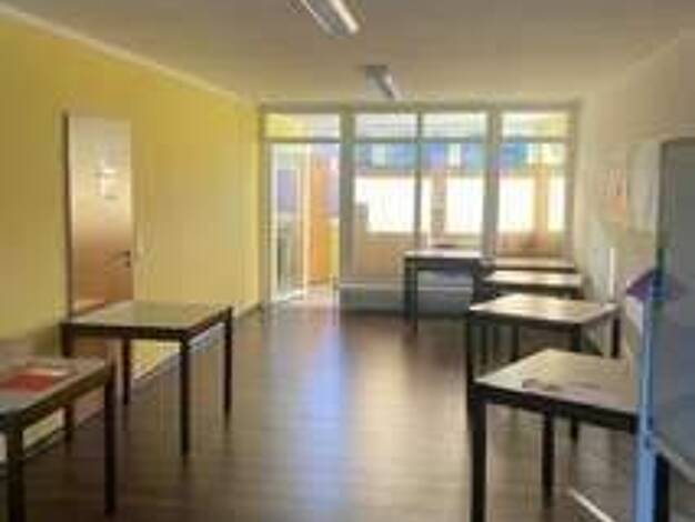 Im Erdgeschoss links befindet sich eine Büro-/Praxisfläche mit großer Fensterfront, separatem Eingang, Einbauküche und barrierefreiem WC. Über einen weiteren Eingang in der Mitte gelangt man in ein E...