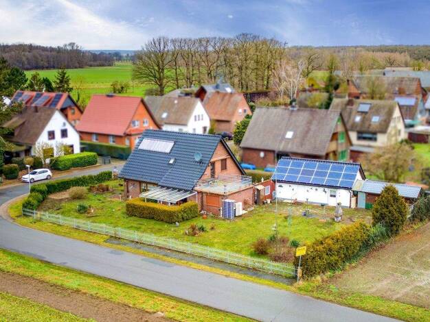 Die umliegende Landschaft mit ihren Wäldern, Wiesen und Flüssen lädt zu Spaziergängen und Fahrradtouren ein und bietet höchsten Erholungswert – perfekt für naturverbundene Hauskäufer.