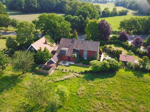 Ruhe, Raum und Natur genießen? An der Altendorfer Diek im Außenbereich von Nordhorn befindet sich dieses besondere freistehende Wohnhaus, idyllisch eingebettet in eine grüne, waldreiche Umgebung auf ...