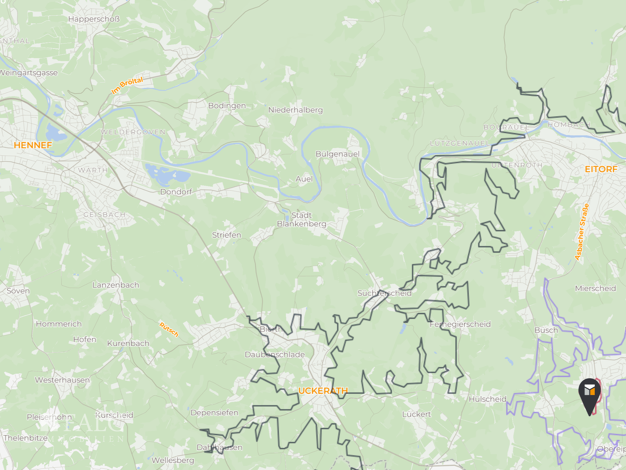 Eitorf liegt im schönen Sieg-Tal, ungefähr 30 Kilometer östlich von Bonn und etwa 40 Kilometer südöstlich von Köln. Die Lage macht Eitorf besonders attraktiv für Pendler. Mit der S-Bahn-Linie S12 erreichst du sowohl Köln als auch Bonn bequem innerhalb einer Stunde – perfekt für all jene, die in der Großstadt arbeiten, aber die ländliche Ruhe bevorzugen. Zudem bietet die Nähe zur B56 eine gute Anbindung für Autofahrer.