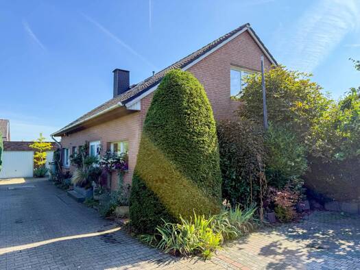 Das großzügige, freistehende Einfamilienhaus mit umfangreichem Anbau, Doppelgarage und weiterem Nebengebäude befindet sich in ruhiger Wohnlage innerhalb eines gewachsenen Siedlungsbereichs in Everswi...