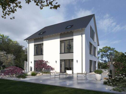 Zeitlose Eleganz außen, Weite und ein besonderes Raumgefühl innen - das ist unser Design 10. Unter dem Satteldach warten hier rund 135 m² auf zwei Ebenen darauf, bezogen und mit Leben gefüllt zu werd...