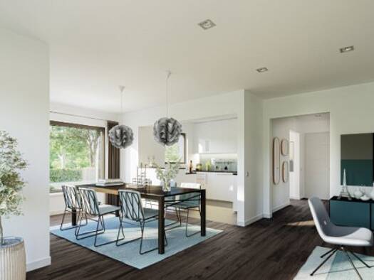 Dem Windfang schließt sich in unserem EDITION 123 eine großzügige Diele an, die direkt in den Wohnbereich führt. Der wohldurchdachte Grundriss weist die offene Küche und den Essplatz als weitere eige...