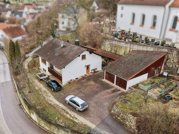 Sanierungsbedürftiges, freistehendes Einfamilienhaus mit großem Potenzial und wunderschönem Grundstück in Tegernbach Nähe Pfaffenhofen a.d. Ilm. Einliegerwohnung neu renoviert im Erdgeschoss.