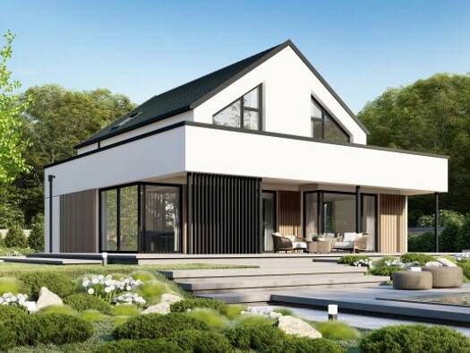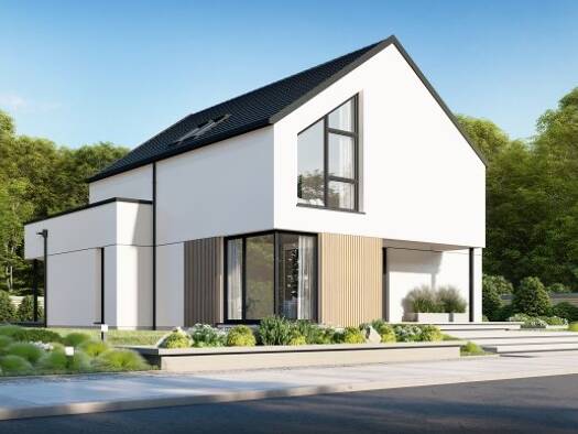 DAN-WOOD - Point 167 S Eineinhalbgeschossiges Haus mit 4 Zimmern, offener Küche, Bad, Gäste-WC, Diele, Flur und Technikraum. Satteldach mit 40° Dachneigung. Kniestock 0,75m. KFN u. QNG Förderung gege...