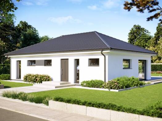 DAN-WOOD - Perfect 112(KfW40 Niedrigenergiehaus) Bungalow mit 4 Zimmern, offener Küche, Bad, Gäste-WC, Technikraum, Diele und überdachtem Hauseingang. Walmdach mit 25° Dachneigung. Im Angebotspreis e...