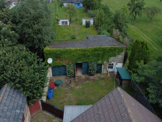 Ein Einfamilienhaus mit einem Stockwerk, Keller und ausgebautem Dachgeschoss, das über 120 Quadratmeter Wohnfläche verfügt. Es gibt außerdem ein Nebengebäude, dessen Baujahr unbekannt ist, das aber s...