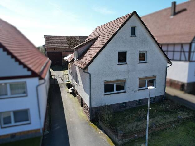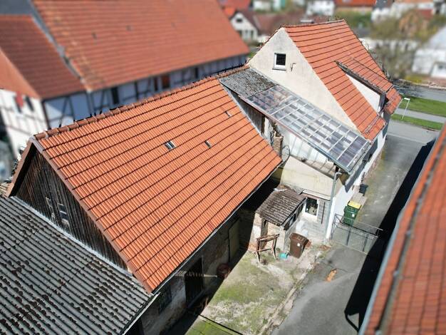 Das angebotene Gebäudeensemble besteht aus einem zweigeschossigen Fachwerkhaus aus dem Jahre ca. 1850, einer Scheune mit Heuboden, einem Zwischenbau mit ehemaligen Stallungen und einem überdachten Ho...
