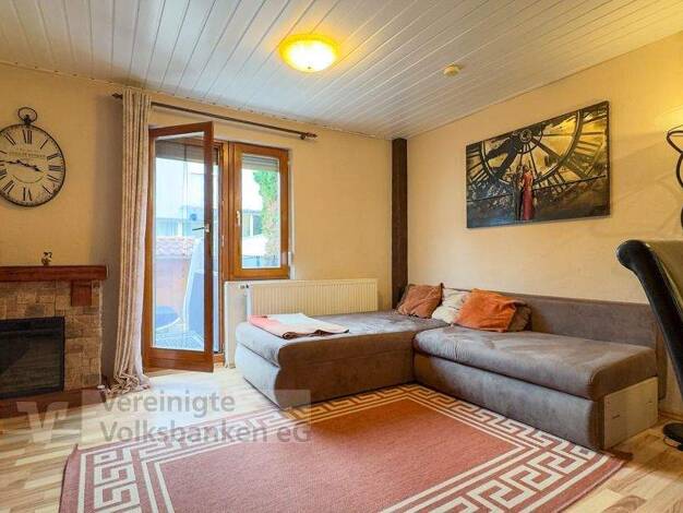 Objektbeschreibung Beschreibung: Das Wohnzimmer ist mit einem Laminatboden ausgestattet. Von hier gelangen Sie auf die Terrasse und in den Garten. In der Küche ist eine ältere Einbauküche vorhanden. ...