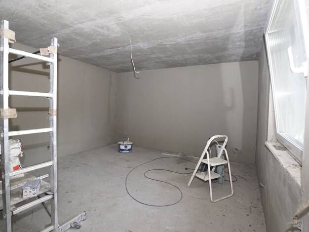 Einseitig angebautes Doppelhaus mit zwei Etagen, Keller und ausgebautem Dachgeschoss, Wohn-/Nutzfläche von 256/114 m², Baujahr 1950. Aufteilung: Erdgeschoss mit Flur, Gäste-WC, Badezimmer, Kinderzimm...
