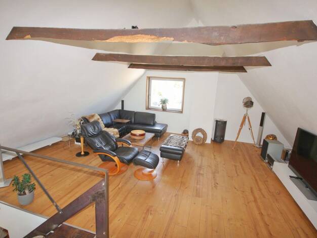 Laut Gutachten: Es handelt sich um ein eingeschossiges, unterkellertes Wohnhaus mit zwei Wohneinheiten nebst Garage. Das Dachgeschoss wurde zu Wohnzwecken ausgebaut. Das Gebäude wurde im Jahr 1961 er...