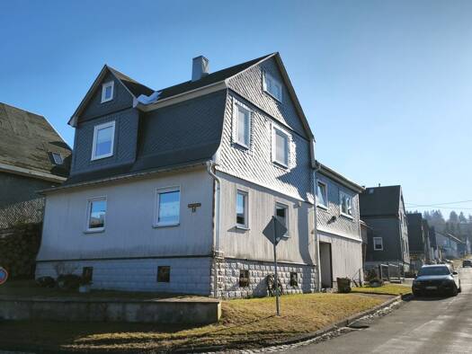 Objektbeschreibung Wenn Sie schon immer davon geträumt haben auf den Höhen des Thüringer Waldes zu Wohnen, dann ist diese Immobilie genau das Richtige für Sie! Die spezielle Außenfassade besteht zum ...