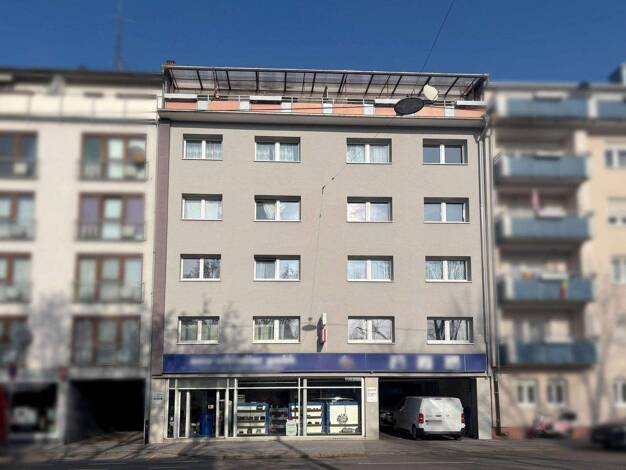 Sechsstöckiges Wohn- und Geschäftshaus mit Kellergeschoss, insgesamt 3.344 m² Wohn- und Nutzfläche, sowie 11 Parkplätzen für Pkw (davon 7 überdacht). Das Gebäude wurde im Jahr 1957 erbaut. Das Gebäud...