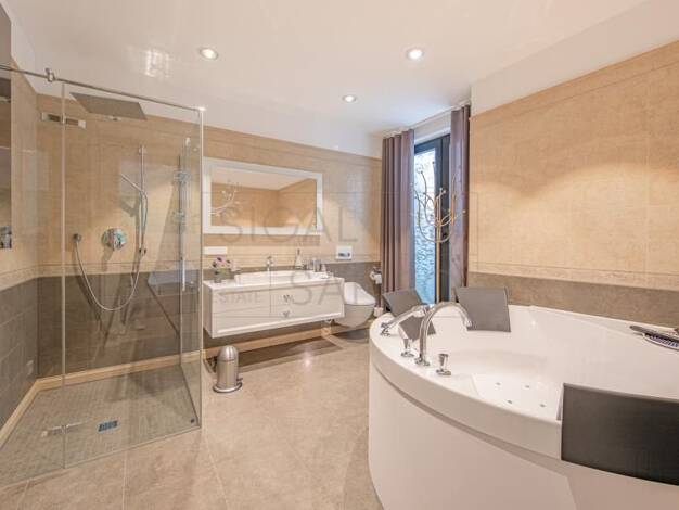 Das Anwesen beeindruckt bereits beim ersten Blick mit seiner klaren architektonischen Linie, der Verwendung hochwertiger Natursteine und einem parkähnlich angelegten Garten, der sich über mehr als 3....
