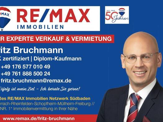 Das große RE/MAX Immobilien Netzwerk Südbaden Die *NR. 1* Immobilienvermittlung mit Ihrem 1. Ansprechpartner Fritz Bruchmann von RE/MAX in der Region -Lörrach/Weil am Rhein/Rheinfelden/Schopfheim/Mül...