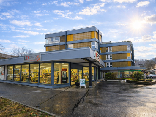Markantes Geschäftshaus, Baujahr 1974, in exponierter Lage, unweit Schweizer Grenze, mit ca. 2.131 m² Nutzfläche und ca. 371 m Wohnfläche. Tiefgarage mit 32 Plätzen und Außenparkflächen auf 3.218 m² ...