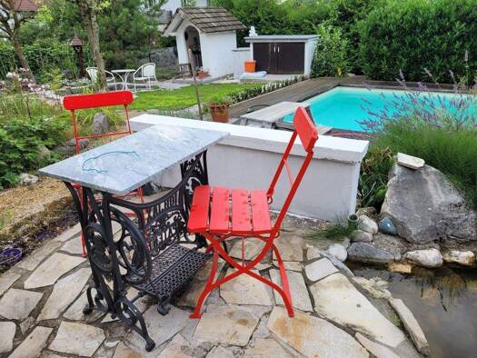 Zum Verkauf steht diese schöne Liegenschaft mit ihrem 10 x 20 m großen Schwimmteich. Zwei separate Wohneinheiten, verteilt auf Erdgeschoss und Obergeschoss, befinden sich in diesem Haus, welches voll...