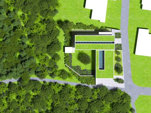 Die geradlinige Struktur der zweigeschossigen Flachdachvilla wird durch die Fassadenrücksprünge und die asymmetrische Gestaltung architektonisch ergänzt. Clever und vor allem für kleine Grundstücke g...