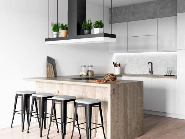 Essbereich und Küche liegen offen daneben und bleiben verbunden. Passt nicht, wenn alle Räume strikt voneinander getrennt liegen sollen. Im Hausbau entscheidet sich früh, welche Ordnung den Alltag tr...