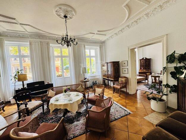 Zum Verkauf steht ein außergewöhnliches, denkmalgeschütztes Herrschaftshaus aus dem Jahr 1891, das sich durch seine eindrucksvolle Architektur und großzügige Wohnflächen auszeichnet. Das gepflegte Me...