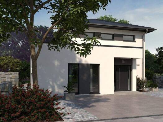Das Einfamilienhaus Design 16 besticht auf zwei Etagen durch sein großes Platzangebot, die clevere Raumaufteilung und exklusive Ausstattungsdetails. Vom Eingang im Erdgeschoss führt ein langer Flur g...