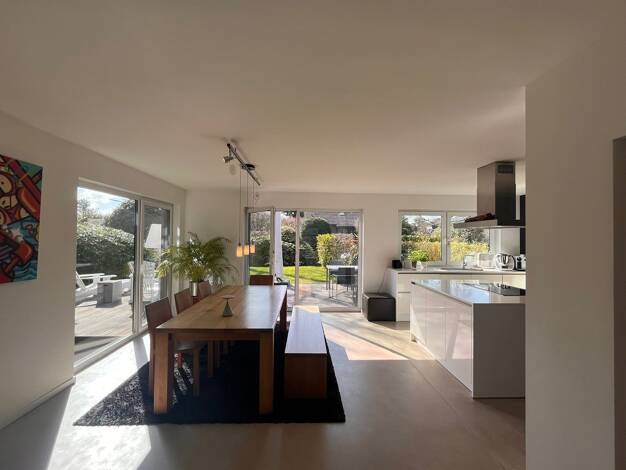 Modernes Einfamilienhaus in attraktiver und zentraler Lage von Sasel, Baujahr 2010, Highlight ist der großzügige und lichtdurchflutete Wohn-/Essbereich mit Blick in den Garten, große Fensterfronten, ...