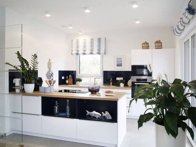 Unter dem Satteldachhaus mit maritimem Flair stecken 194 m2, die viel Raum zur Entfaltung gewähren. Der 16 m² große Eck-Anbau eignet sich z.?B. für ein Home-Office, welches bei Bedarf noch um ein wei...