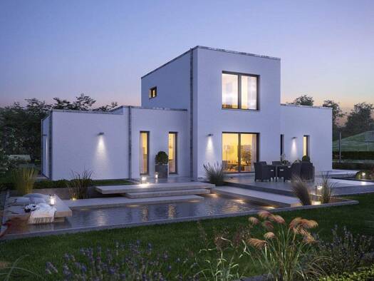 Dieses moderne Haus bietet Platz und Wohlbehagen. Genießen Sie Ihre Abende auf der großen Dachterrasse mit 46 m². Diese Immobilie mit ca. 194 m² Netto-Grundfläche (nach DIN277) bildet mit dem Moderne...
