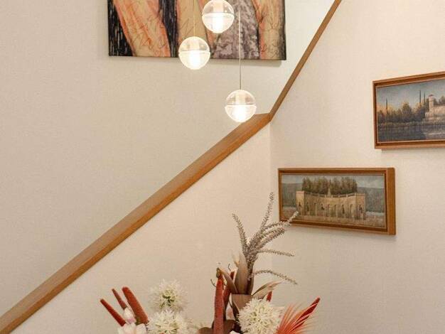 Das Haus empfängt mit modernen, nordisch inspirierten Farben - warme Holztöne und dezente Kontraste sorgen für ein behagliches, edles Ambiente. Der große Esstisch wird zum Treffpunkt: Hier spielt, la...