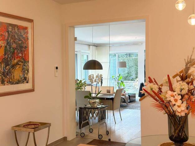 In einer der begehrtesten Lagen Bad Homburgs präsentiert sich diese hochwertig modernisierte Doppelhaushälfte aus dem Baujahr 1977 als ein außergewöhnliches Zuhause für Menschen, die Wert auf Stil, R...