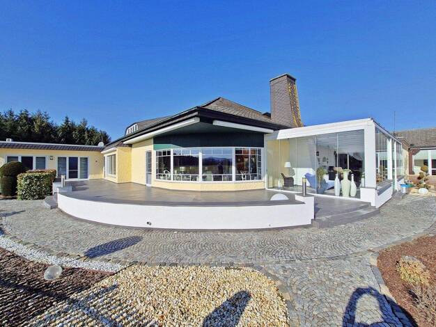 Willkommen in einem Ort, der wie ein verstecktes Juwel inmitten der Natur erstrahlt - eine Villa, die mit ihrer zeitlosen Eleganz und lichtdurchfluteten Räumen ein Gefühl von Geborgenheit und Freihei...