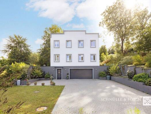 Die einzigartige und imposante Immobilie liegt sichtgeschützt in Hanglage auf einem atemberaubenden Grundstück auf etwa 1.250 m². Das 2500 m² große Grundstück ist je zur hälfte ideell geteilt und lau...
