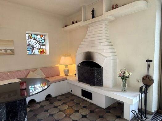 Das Haus ist in modernem Stil erbaut; die Räume sind hoch und lichtdurchflutet. Das Grundstück wurde terrassenförmig angelegt, so dass sie den Garten und die Terrassen von jedem Geschoß aus erreichen...