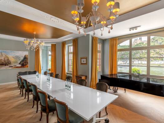 In unvergleichlicher Lage, hochwassergeschützt und in erster Rheinreihe, erhebt sich dieses herrschaftliche Anwesen aus dem Baujahr 1892 mit einer Wohnfläche von ca. 429 m² auf einem ca. 2.403 m² gro...