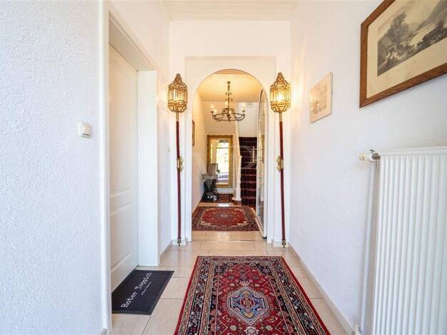 Der Zugang zu dem Anwesen aus dem Jahr 1807 erfolgt durch ein aufwendig gefertigtes Einfahrtstor in Kunstschmiedearbeit. Das renovierte Zweifamilienhaus mit historischem Charme und modernem Wohnkomfo...