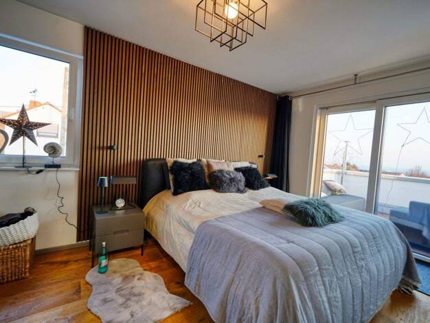 Von Ihrer weitläufigen Panorama-Terrasse können Sie Ihren Blick weit in die Ferne schweifen lassen. Genießen Sie nicht nur das atemberaubende Ambiente Ihres puristischen Architektenhauses, sondern pr...