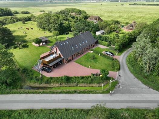 Großzügiges Wohnhaus im Ordinger Außenbereich 884/0-12445 Diese außergewöhnliche Immobilie liegt auf einer Warft am Ortsrand von Brösum/Sankt Peter-Ording. Die Lage ist einzigartig und bietet einen u...