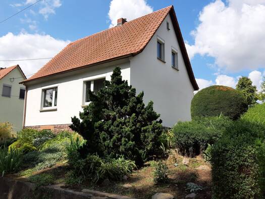 Das angebotene Einfamilienhaus wurde 1959 in solider Massivbauweise mit Natursteinsockel errichtet und bietet auf etwa 90 m² Wohnfläche im Erd- und Obergeschoss insgesamt 4 Zimmer. 1995/96 erfolgte a...