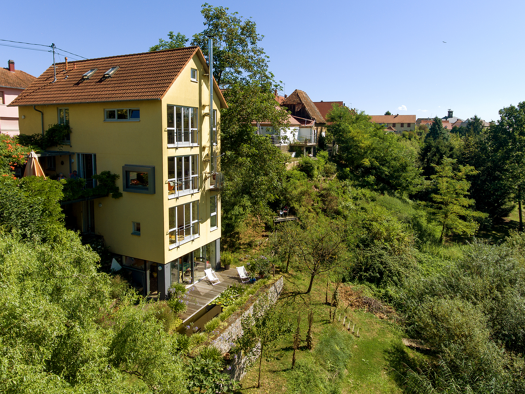 Das aufwändig in den Hang gebaute Haus besticht durch seine offenen Grundrisse auf 3 Etagen plus Galerie und die wunderschönen Terrassen und Freisitze auf jeder Ebene. Das Haus kann bei Bedarf in zwe...
