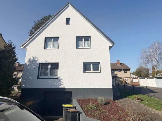 Das hier angebotene, modernisierte Einfamilienhaus präsentiert sich mit 5 Zimmern (davon bis zu 3 Schlafzimmern), 2 Bädern, einer Terrasse und Garten. Die ehemalige Garage ist inzwischen zu einem woh...