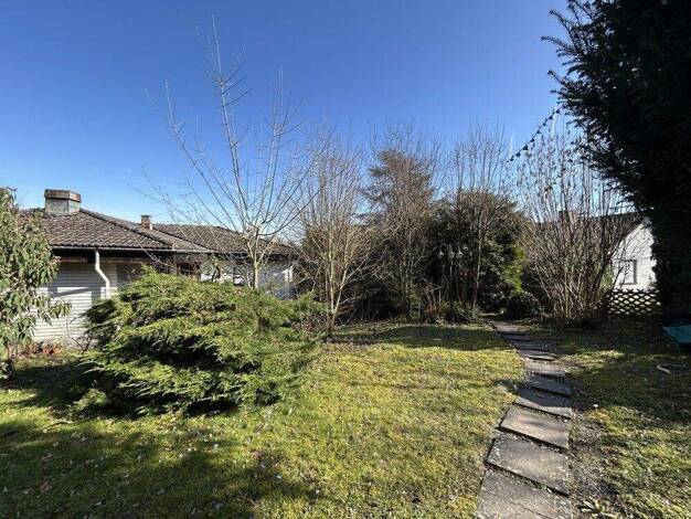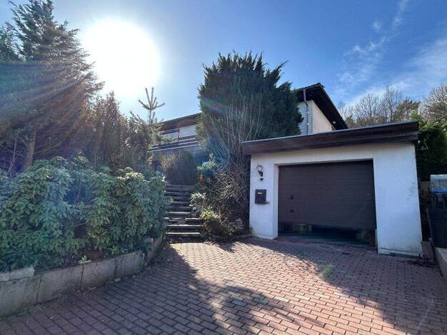 Dieses Wohnhaus aus dem Jahr 1966 wurde auf einem großzügigen Grundstück mit einer Fläche von 1.539 m² errichtet. Sie erreichen das Wohnhaus über eine Auffahrt sowie einige Stufen und betreten zunäch...